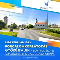 A Pannon-Víz Zrt. Győrújfalu településen, a Mártírok útja és a Rákóczi Ferenc utca csomópontjában burkolatfelújításhoz kapcsolódó ivóvízhálózat‑rekonstrukciós munkálatokat végez. Részletek itt...