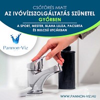 Csőtörés történt Győrben a Sport utcában az ivóvízvezetéken. A hibaelhárítás ideje alatt az ivóvízellátás szünetelésére lehet számítani az alábbi részeken... Részletek itt...