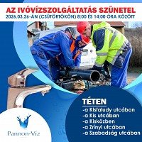 Társaságunk 2026. március 25-én (szerdán) ivóvízhálózat rekonstrukciós munkákat végez Mosonszentmiklós településen. Részletek itt...