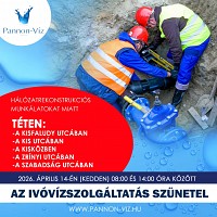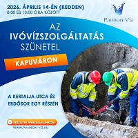 Társaságunk 2026. április 14-én (kedden) ivóvízhálózat javítási munkákat végez Kapuváron az Erdő sor utcában. A munkavégzés ideje alatt az ivóvízszolgáltatás szünetelésére lehet számítani az alábbi részeken... Részletek itt...