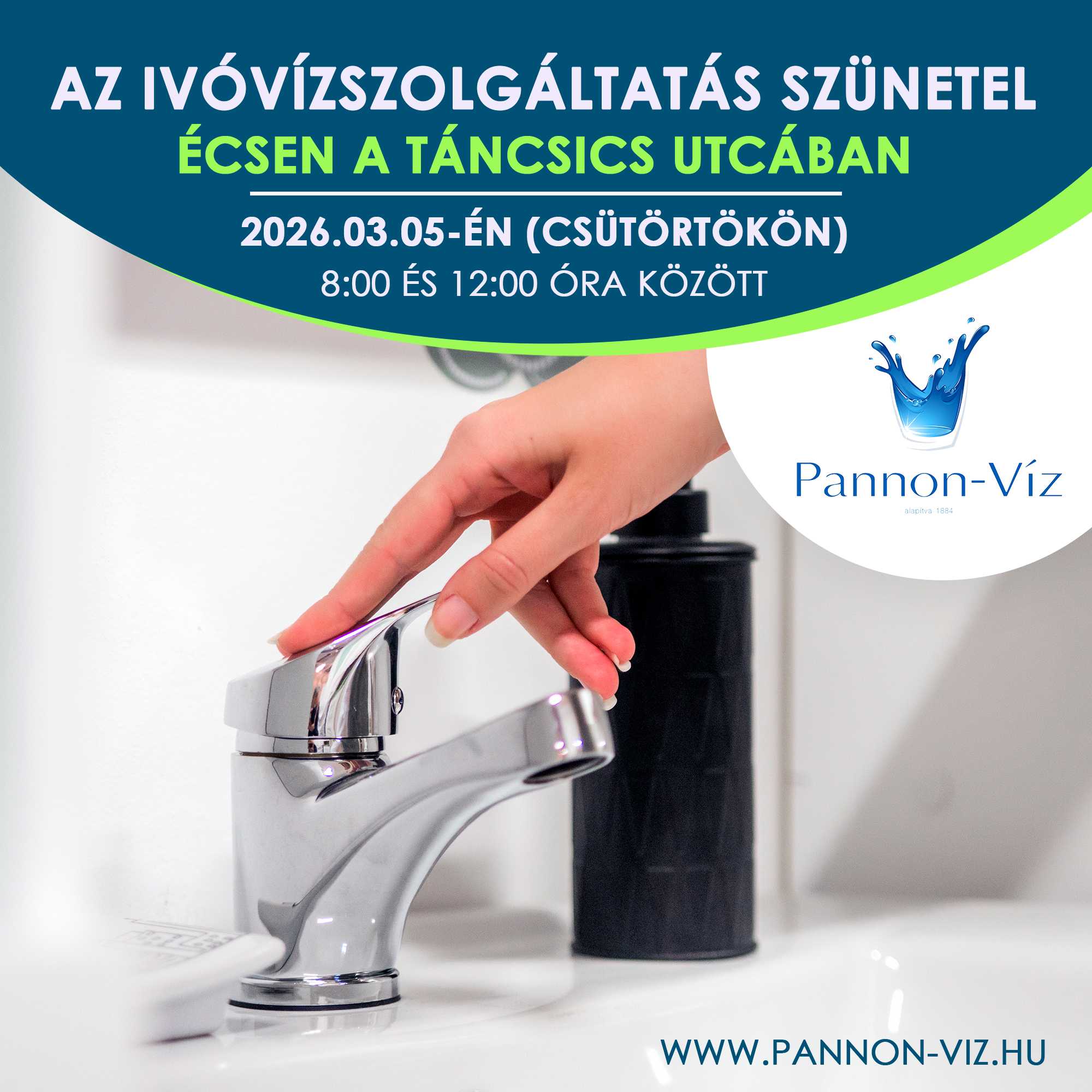 Tájékoztatjuk Tisztelt Felhasználóinkat, hogy társaságunk 2026. március 5-én (csütörtökön) ivóvízhálózat rekonstrukciós munkákat végez Écs településen.