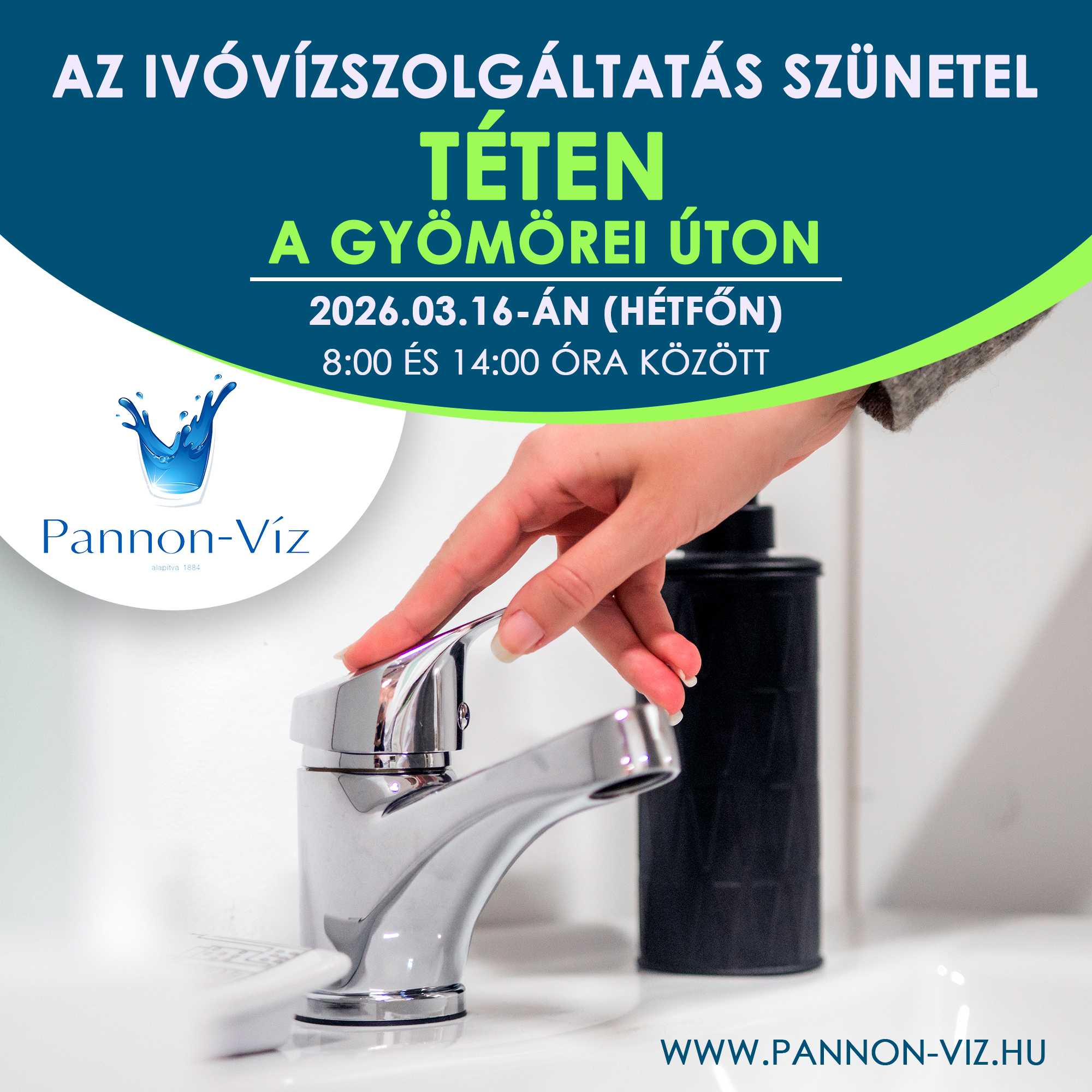 Tájékoztatjuk Tisztelt Felhasználóinkat, hogy társaságunk 2026. március 16-án (hétfőn) ivóvízhálózat rekonstrukciós munkákat végez Tét településen.