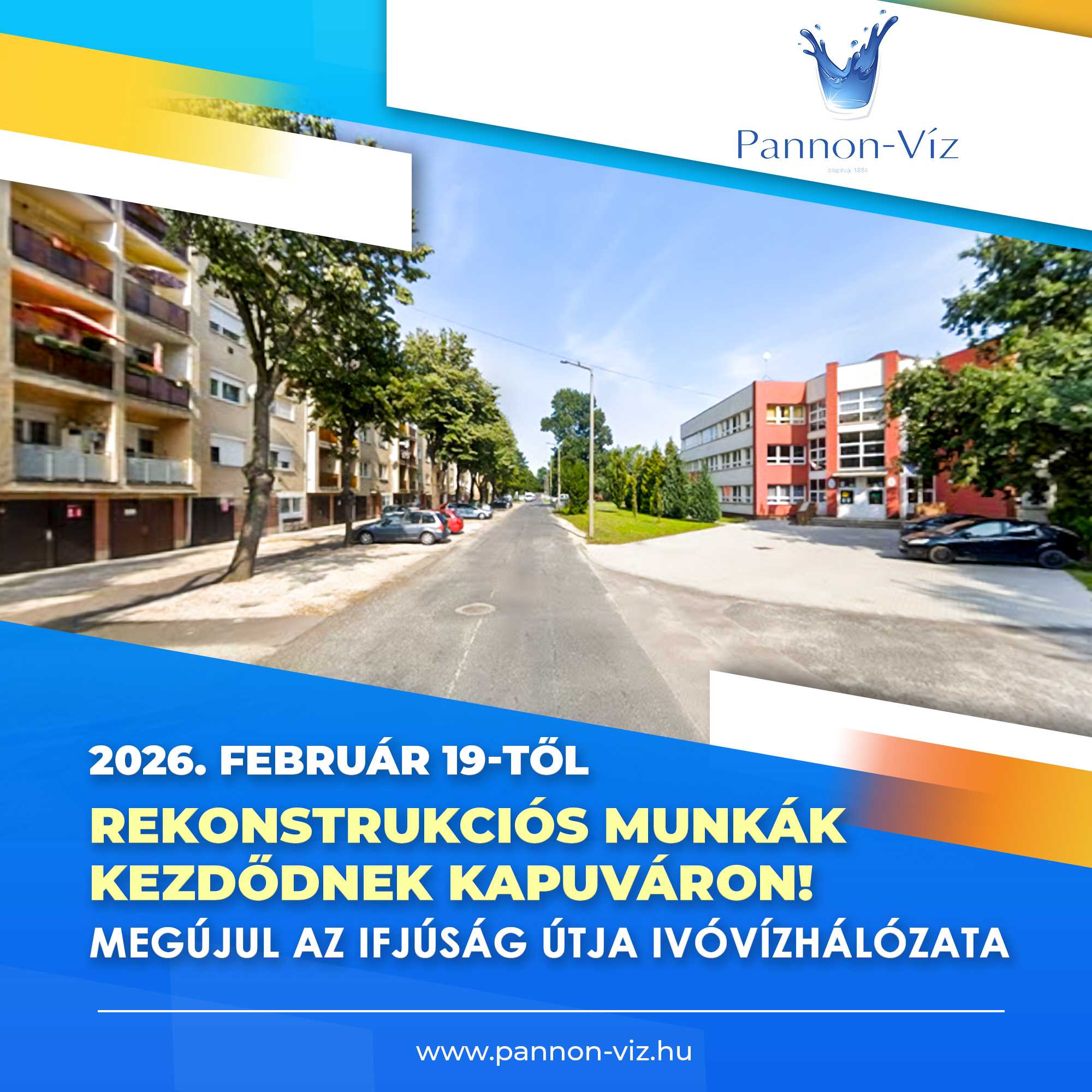 Tájékoztatjuk Tisztelt Felhasználóinkat és az arra közlekedőket, hogy a kiváló minőségű és zavartalan ivóvízszolgáltatás hosszú távú biztosítása érdekében 2026. február 19-én ivóvízhálózat‑rekonstrukciós munkálatok kezdődnek Kapuváron, az Ifjúság útján.