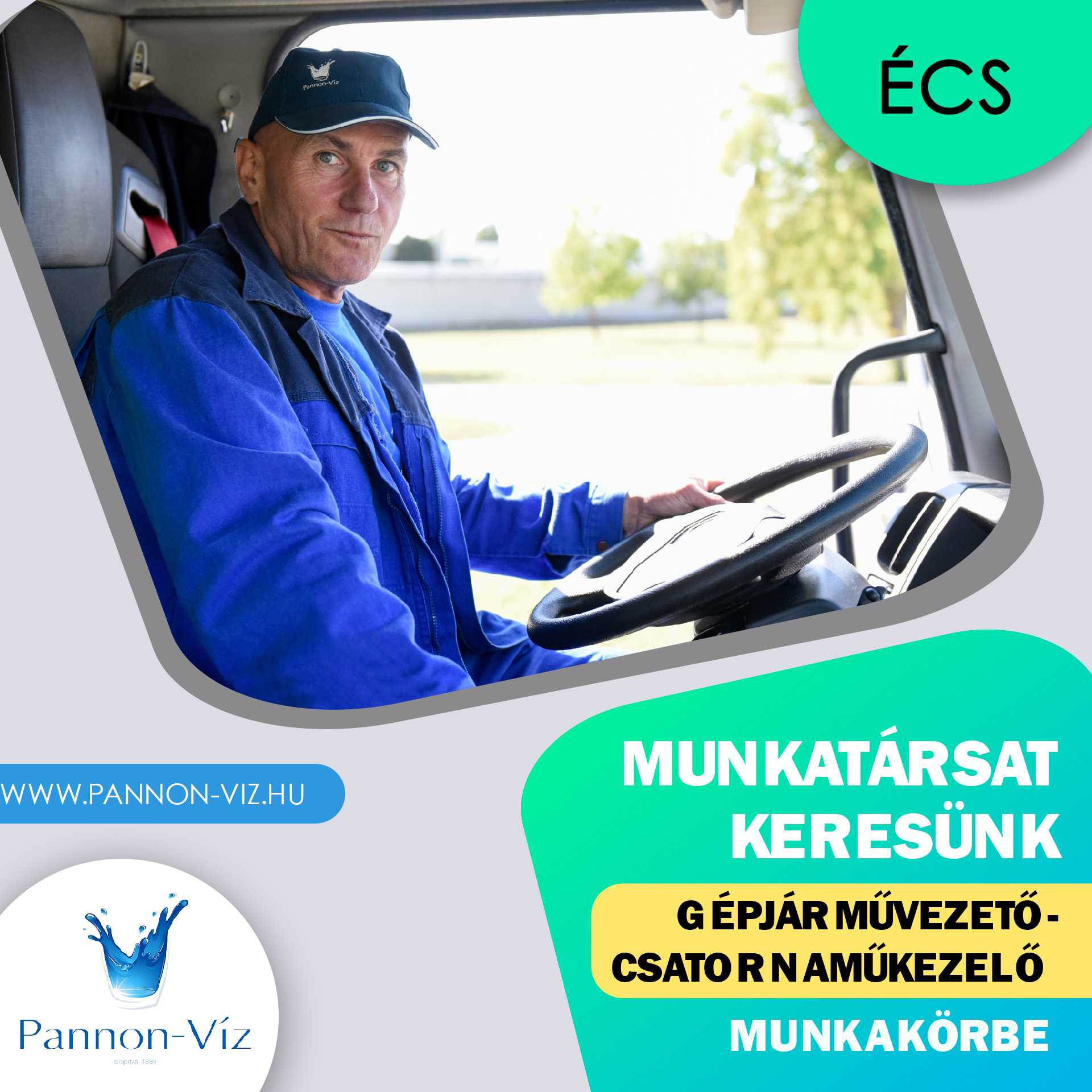 A szakmai önéletrajzokat – a munkakör megjelölésével – várjuk a 9025 Győr, Imaház u. 1. postacímünkre vagy az iktato@pannon-viz.hu email-címre.