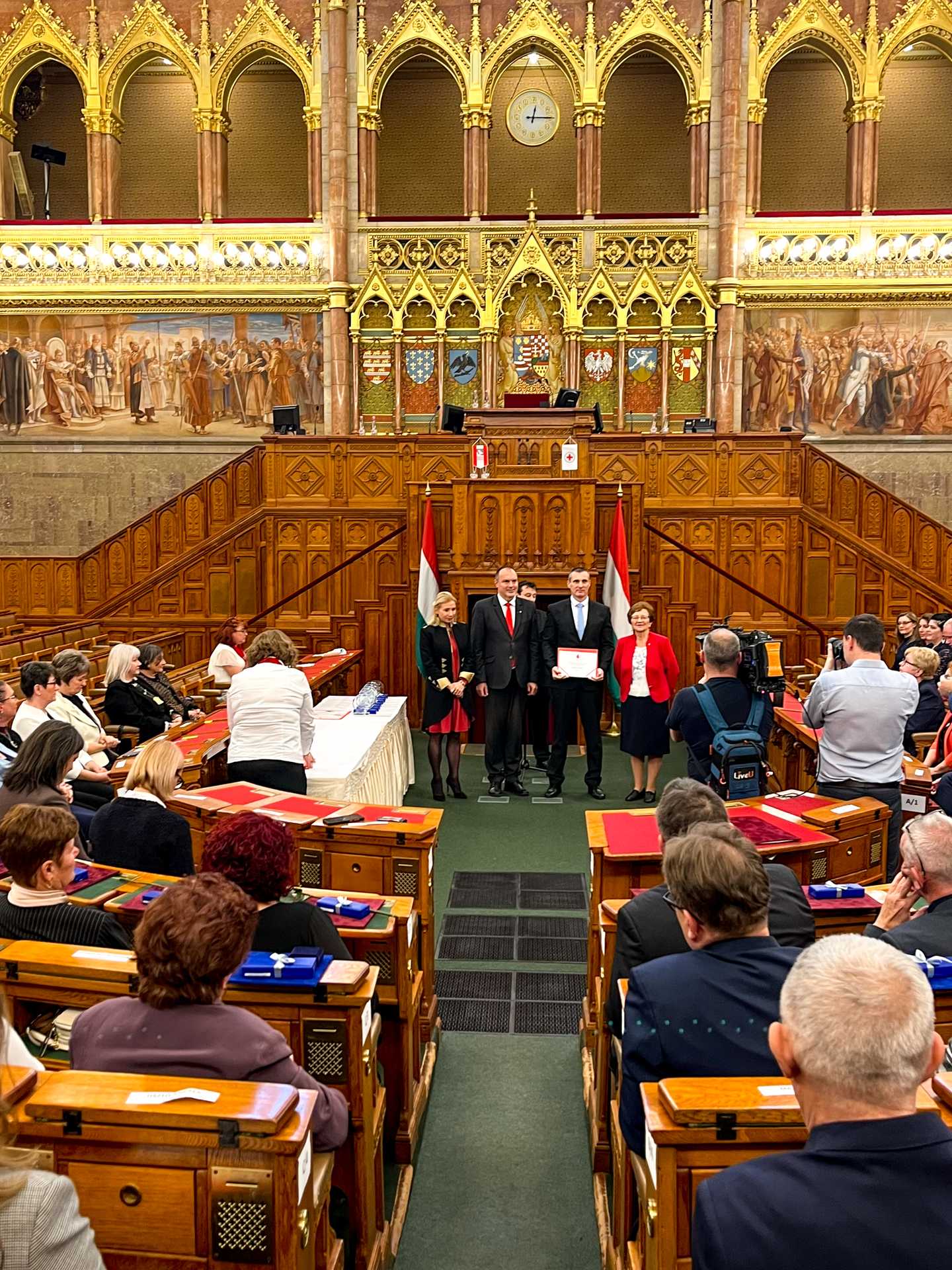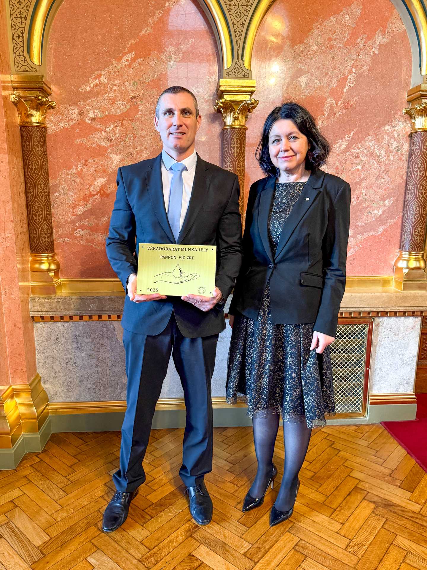 A kitüntető oklevelet és az emléktáblát vállalatunk nevében Lipovics János, a Pannon‑Víz Zrt. műszaki igazgatója vette át a Véradók Napján.