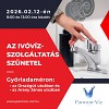 Tájékoztatjuk Tisztelt Felhasználóinkat, hogy társaságunk 2025. december 17.-én (szerdán) ivóvízhálózat rekonstrukciós munkákat végez Győrasszonyfa településen.