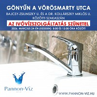 Társaságunk 2026. március 24-én (kedden) ivóvízhálózat rekonstrukciós munkákat végez Gönyű településen. Részletek itt...