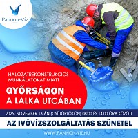 2025. október 27-én ivóvízvezeték csomópont csere munkák kezdődnek Győrben a Zöld utca és a Szőnyi Márton utca kereszteződésében. Részletek itt...