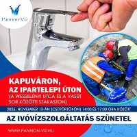 A Pannon-Víz Zrt. őszi rendszeres karbantartási és tisztítási munkálatokat végez a vízhálózaton, a vízminőség megóvása érdekében. A munkálatok az alábbi helyszíneken és időpontokban zajlanak... Részletek itt...